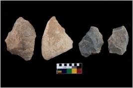 | Description / विवरण | There are n 4 flakes tool; there are multidirectional irregular scar pattern on them; made of short flakes and all four have tapering edges. |