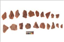 | Description / विवरण | There are n 20 flakes; there are multidirectional irregular scar pattern on them; made of short flakes one is blade, one has pen pointed edge and few have tapering edges. |