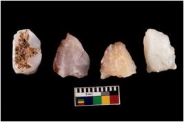 | Description / विवरण | Four utilised worked cores with sharp edges. Flakes have been removed from few sides. |