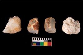 | Description / विवरण | Four utilised worked cores with sharp edges. Flakes have been removed from few sides. |