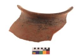 | Description / विवरण | Specimen of black on red ware with black decorative geometric painting. |