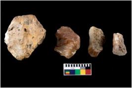| Description / विवरण | Four utilised worked cores with sharp edges. Flakes have been removed from few sides. |