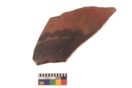 | Description / विवरण | Specimen of black on red ware with black decorative Wavy lines geometric painting. |