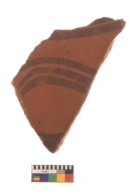 | Description / विवरण | Specimen of black on red ware with black decorative Semi circles geometric painting. |