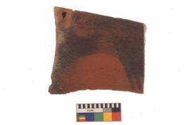 | Description / विवरण | Specimen of black on red ware with black decorative Semi circle geometric painting. |
