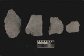 | Description / विवरण | There are n 4 flakes tool; there are large flakes with sides trimmed, Marks of secondary flaking are present on the both the faces.The dorsal is relatively flat. |