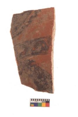 | Description / विवरण | Specimen of black on red ware with black decorative geometric painting. |