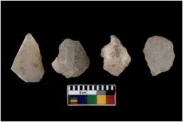 | Description / विवरण | There are n 4 flakes tool; there are flakes tool with prominent flaking marks. It made up of a short flakes with sides trimmed. |