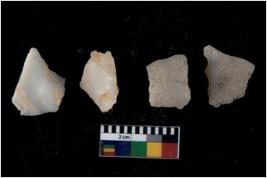 | Description / विवरण | There are n 4 flakes tool; there are flakes tool with prominent flaking marks. It made up of a large flakes with sides trimmed. |
