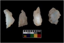 | Description / विवरण | There are n 4 flakes tool; there are flakes tool with prominent flaking marks. It made up of a large flakes with sides trimmed. |