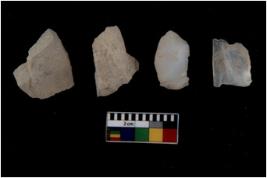 | Description / विवरण | There are n 4 flakes tool; there are large flakes with sides trimmed, Marks of secondary flaking are present on the both the faces |