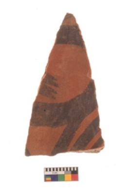 | Description / विवरण | Specimen of black on red ware with black decorative Concentric circles geometric painting. |