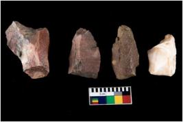 | Description / विवरण | Four utilised worked cores with sharp edges. Flakes have been removed from few sides. |
