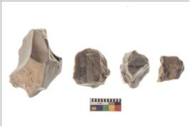 | Description / विवरण | Specimen of a cores with several broad fluted marks and some of them are tapering at one end. |