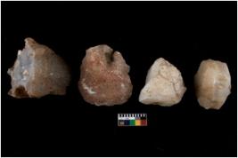 | Description / विवरण | There are n 4 utilized flake cores. There are multi directional irregular scar pattern on them. One has sharp edge and three have blunted edges. |