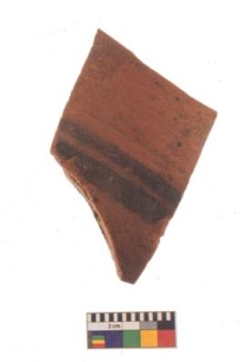 | Description / विवरण | Specimen of black on red ware with black decorative Parallel horizontal lines geometric painting. |