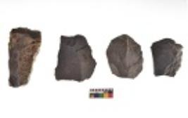 | Description / विवरण | There are n 4 utilized flake cores. There are multi directional irregular scar pattern on both dorsal and ventral face of the flake cores. One is tapering at one end and three have blunted edges. |
