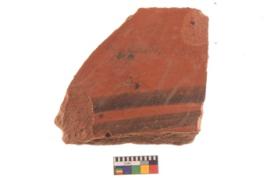 | Description / विवरण | Specimen of black on red ware with black decorative Parallel lines geometric painting. |
