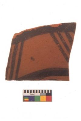 | Description / विवरण | Specimen of black on red ware with black decorative Two parallel lines with vertical lines in between geometric painting. |