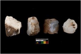 | Description / विवरण | There are n 4 utilized flake cores. Out of them one is made up of Chert and three are made up of Chalcedony. There are multi directional irregular scar pattern on them. Two have blunted edges and two have round edges. |