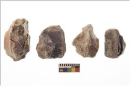| Description / विवरण | Specimen of a cores with several broad fluted marks and some of them are tapering at one end. |