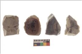 | Description / विवरण | There are n 4 flakes tool; there are multidirectional irregular scar pattern on them; made of short flakes and all four have tapering edges. |