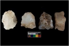 | Description / विवरण | There are n 4 utilized flake cores. Out of them two are made up of Chert and two are made up of Chalcedony. There are multi directional irregular scar pattern on them. Two have blunted edges and two have round edges. |