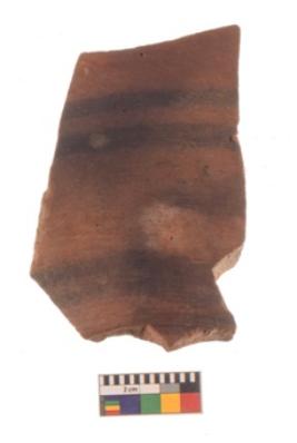 | Description / विवरण | Specimen of black on red ware with black decorative Parallel lines geometric painting. |