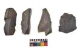 | Description / विवरण | There are n 4 utilized flake cores. There are multi directional irregular scar pattern on both dorsal and ventral face of the flake cores. Three are tapering at one end and one has blunted edge. |