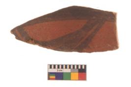 | Description / विवरण | Specimen of black on red ware with black decorative Semi circles geometric painting. |