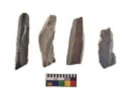 | Description / विवरण | There are n 4 utilized flake cores. There are multi directional irregular scar pattern on both dorsal and ventral face of the flake cores. All of them are tapering at one end. |