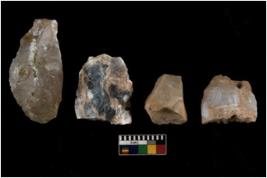 | Description / विवरण | There are n 4 utilized flake cores. Out of them two are made up of Chert and two are made up of Chalcedony. There are multi directional irregular scar pattern on them. One is tapering at one end and three have blunted edges. |
