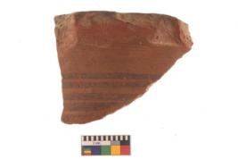 | Description / विवरण | Specimen of black on red ware with black decorative Parallel lines geometric painting. |