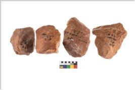 | Description / विवरण | Specimen of flake tool with prominent flaking marks. They are made up of a short flakes with sides trimmed. And are rectangular in shape. |