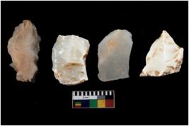 | Description / विवरण | There are n 4 utilized flake cores. Out of them one is made up of Chert and three are made up of Chalcedony. There are multi directional irregular scar pattern on them. One has sharp edge and three are tapering at one end. |