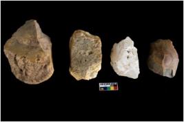 | Description / विवरण | Four utilised worked cores with sharp edges. Flakes have been removed from few sides. |