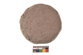 | Description / विवरण | Specimen of ground disc hopscotch made from a red ware. It is rounded in shape. |