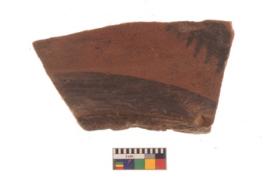 | Description / विवरण | Specimen of black on red ware with black decorative Semi circles geometric painting. |