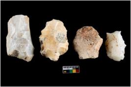 | Description / विवरण | Four utilised worked cores with sharp edges. Flakes have been removed from few sides. |