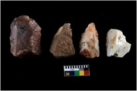 | Description / विवरण | Four utilised worked cores with sharp edges. Flakes have been removed from few sides. |