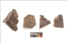 | Description / विवरण | Specimen of a cores with several broad fluted marks and some of them are tapering at one end. |