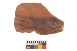 | Description / विवरण | Specimen of black on red ware with black decorative Wavy lines geometric painting. |