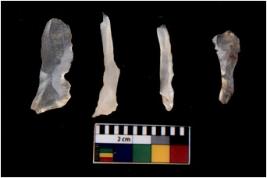 | Description / विवरण | There are n 4 flakes tool; there are flakes tool with prominent flaking marks. It made up of a short flakes with sides trimmed. |