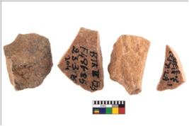 | Description / विवरण | Specimen of flake tool with prominent flaking marks. They are made up of a short flakes with sides trimmed. |
