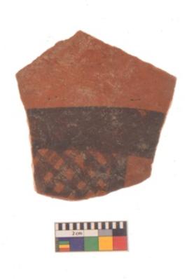 | Description / विवरण | Specimen of black on red ware with black decorative Lattice geometric painting. |