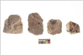 | Description / विवरण | Specimen of a cores with several broad fluted marks and some of them are tapering at one end. |