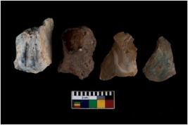 | Description / विवरण | There are n 4 utilized flake cores. Out of them three are made up of Chert and one is made up of Agate. There are multi directional irregular scar pattern on them. Two have sharp edges and two have blunted edges. |