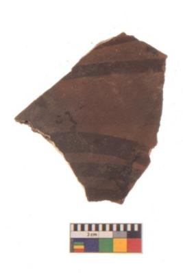 | Description / विवरण | Specimen of black on red ware with black decorative Concentric circles geometric painting. |