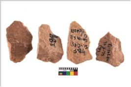 | Description / विवरण | Specimen of flake tool with prominent flaking marks. They are made up of a short flakes with sides trimmed. |