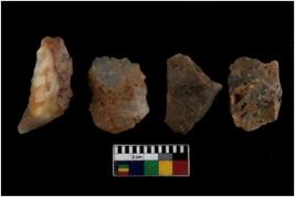 | Description / विवरण | There are n 4 utilized flake cores. Out of them three are made up of Chert and one is made up of Chalcedony. There are multi directional irregular scar pattern on them. One is tapering at one end and three have blunted edges. |